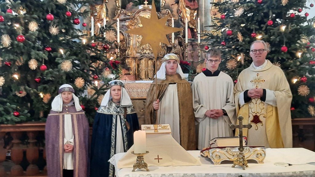 Zelebriert wurde der Gottesdienst von Pfarrer Klaus Beck, der in seiner Predigt die Bedeutung des Sterns von Betlehem in den Mittelpunkt stellte. Ausgehend von der Verheißung des Propheten Bileam – „Ein Stern geht auf in Jakob“ – spannte er den Bogen bis in die Gegenwart. Der Stern, so Pfarrer Beck, habe nicht laut gesprochen, aber den Weg gewiesen. Dieses Suchen und Aufbrechen verbinde die Menschen bis heute mit den Weisen aus dem Osten – und ganz besonders mit den Sternsingern, die den Glauben konkret in den Alltag tragen.
