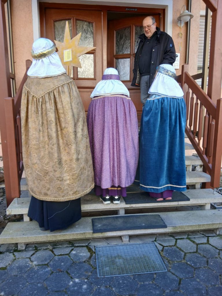 Vor dem Auszug der Sternsinger segnete Pfarrer Beck die Kinder und Jugendlichen, die anschließend ihren traditionellen Spruch in der Kirche vortrugen. Er dankte ihnen herzlich dafür, dass sie einen oder sogar zwei Tage ihrer Weihnachtsferien opfern, um den Segen in die Häuser zu bringen und sich für Kinder einzusetzen, denen es nicht so gut geht. Ebenso sprach er den Gläubigen seinen Dank für die großzügigen Spenden aus.