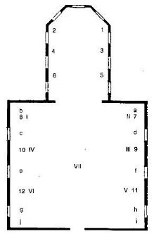 Übersicht der Gemälde und Stukkaturen im Kirchenraum